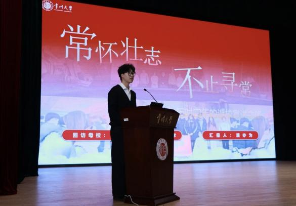 他积极投身社会实践,在常州大学校招协举办的优秀学子回访母校活动中,带领团队连续两届斩获特等奖,获评“常大推介官”荣誉称号,并两次受邀参与回访母校动员会分享经验,为活动的顺利开展提供了有力支持。此外,他还作为文学院代表,携喜报重返高中母校,与学弟学妹分享个人收获、开展招生宣传。
